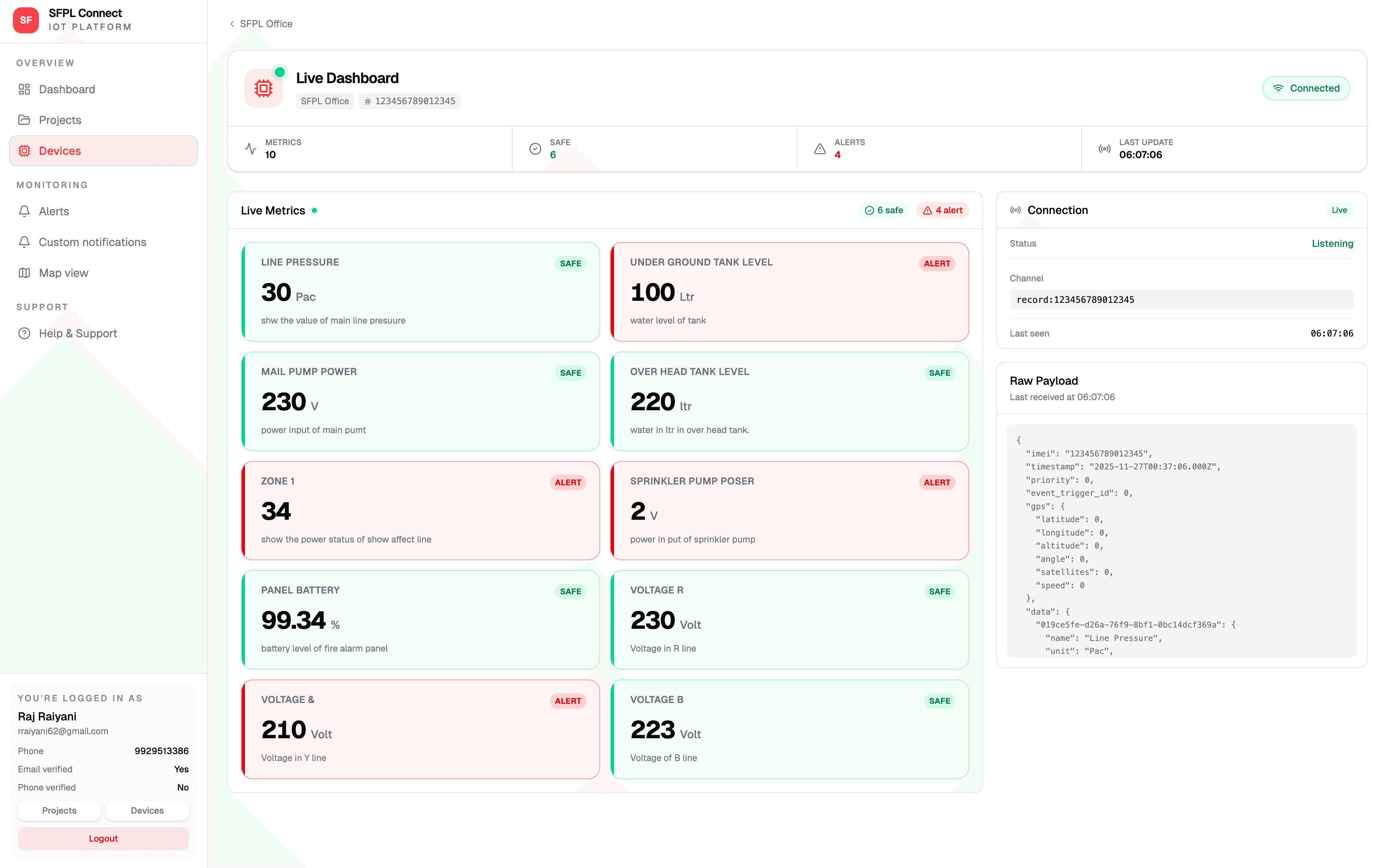 Attach any sensors — pressure, level, temperature, flow, and more — to the input pins of the SFPL Connect device. Supports single or multi-unit deployments.